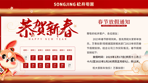 尊敬的松井客戶、各位朋友: 虎振雄風(fēng)留浩氣,兔迎盛世啟新程。歲杪春臨,華章日新,春節(jié)即將到來,感謝各位客戶及朋友伙伴們…